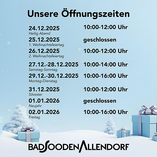 schön, dass wir Sie heute auf der Homepage der Stadt Bad Sooden-Allendorf begrüßen dürfen. Hier wollen wir Ihnen informativ und unterhaltend unsere Heimat ein Stück näher bringen und als Ziel für einen Kurzurlaub oder ein Wellnesswochenende schmackhaft machen.